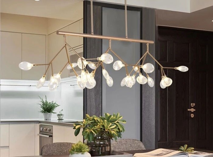 Theo theo phong cách thiết kế nhà bếp của bạn ra sao mà bạn lựa chọn mẫu đèn thả như thế nào cho phù hợp. Sử dụng đèn thả chiếu sáng và làm đẹp cho bàn ăn, giúp bữa cơm gia đình của bạn thêm phần ấm cúng và ngon miệng hơn.
